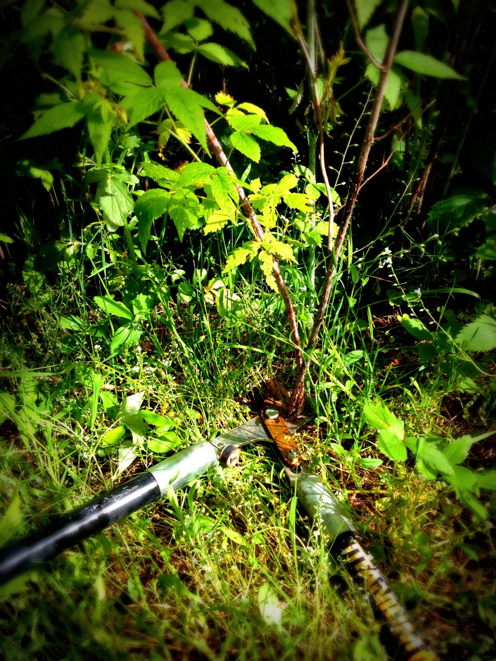 These are inexpensive, fit nicely in a pocket and can easily be carried on a casual ‘trimming’ ride, allowing you to ride and stop from time to time to remove offending branches you encounter. For larger branches, or for reaching deep under a large briar bush, loppers may be necessary: