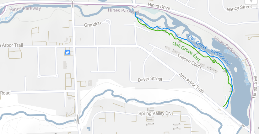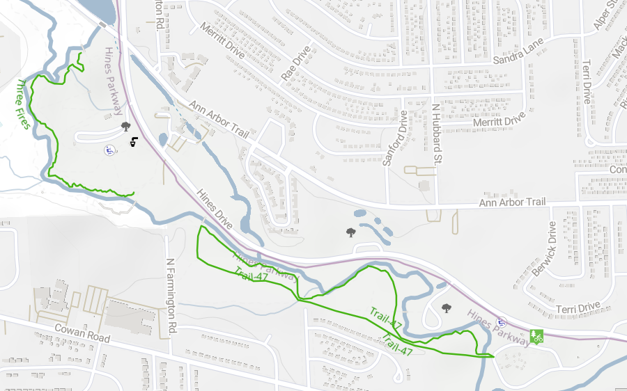 Hines Park is a linear parkway stretching from Northville to Dearborn Heights along the Middle Rouge River, with 15 miles of heavily used paved pathways connecting cyclists in the surrounding communities. Together with Wayne County Parks, the MCMBA is developing singletrack loops long the pathway, inviting users away from the road and into a natural singletrack experience. The current MTB trail sequence is: