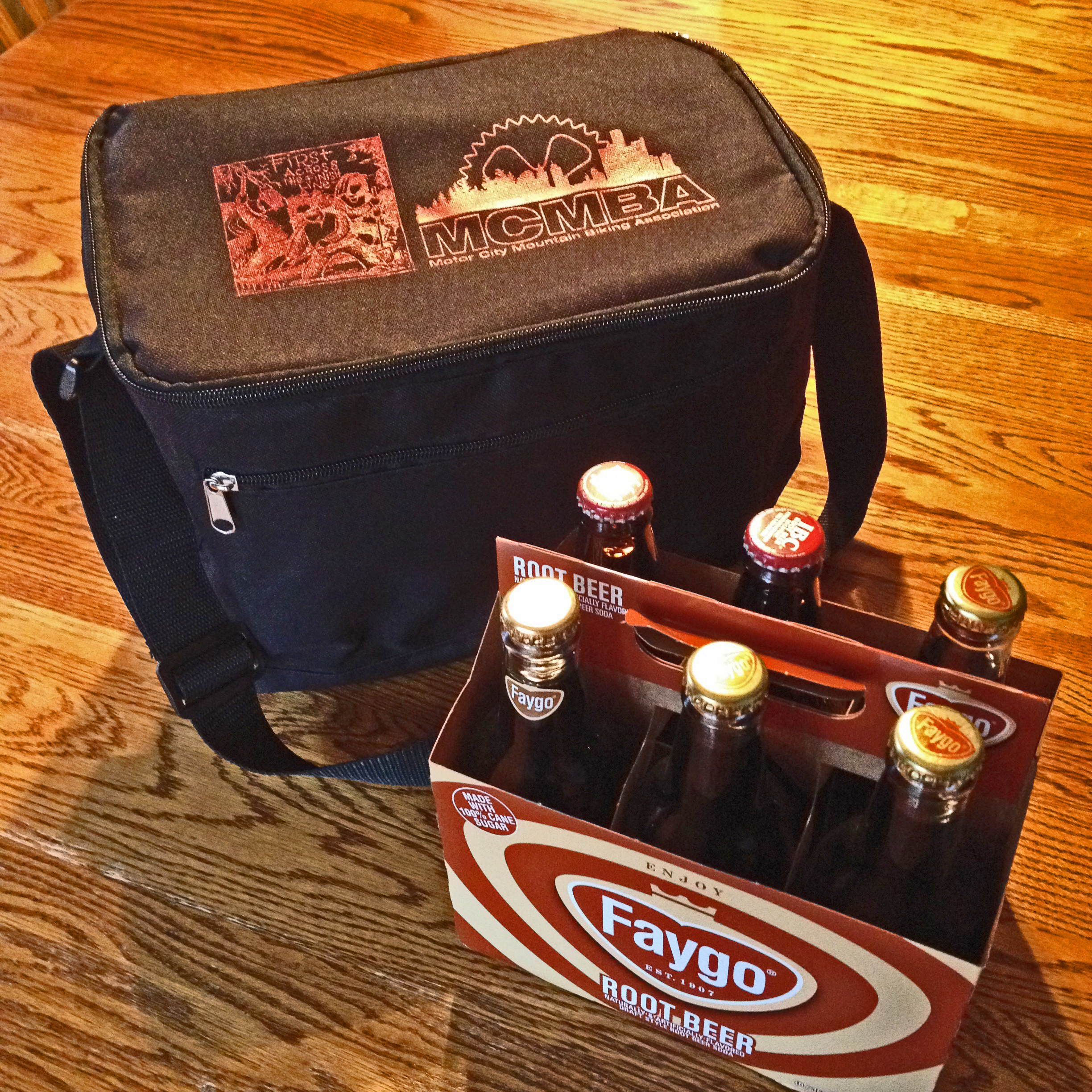 For almost 20 years, the MMBA and our Chapter has recognized significant trail work volunteer efforts with the First Across the Finish Line (FAFL) awards. These awards began as a small token of appreciation made possible by an anonymous memorial to Ed Berta, a volunteer who lost his life in a traffic accident on a trail day. Last year, 35 members of the Motor City Mountain Biking Association contributed at least 10 hours of time trimming trails, clearing deadfall, armoring mud holes, or other boots-on-the-ground trail work. In appreciation, each volunteer is receiving a soft-sided beverage cooler emblazoned with both our chapter and the FAFL logos.