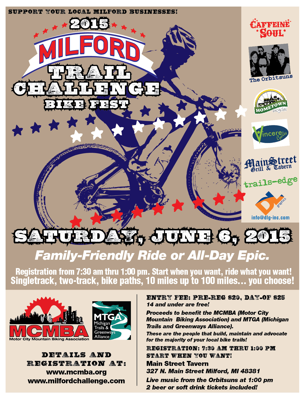 Join us at the 10th annual Milford Trail Challenge and Bike Fest, a family friendly celebration of the great singletrack trails surrounding scenic Milford. Bikers pick their own course: Highland, Milford, Island Lake, Kensington, Proud Lake, Hickory Glen – easily rideable from Milford with great paved bike paths and a minimum of road riding. You can tailor this anywhere from a fun trail ride with friends to an all-day 100 mile epic!