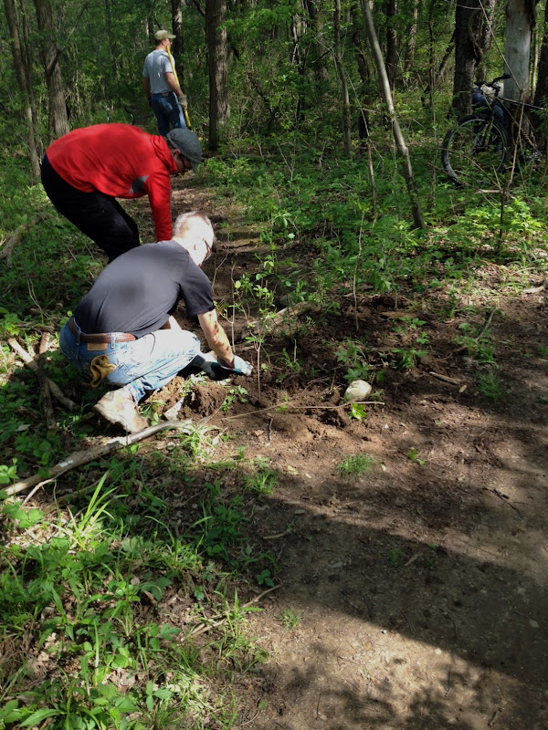 At a recent trail day at Maybury we followed the same techniques to reclaim some old abandoned trail near a wetland.