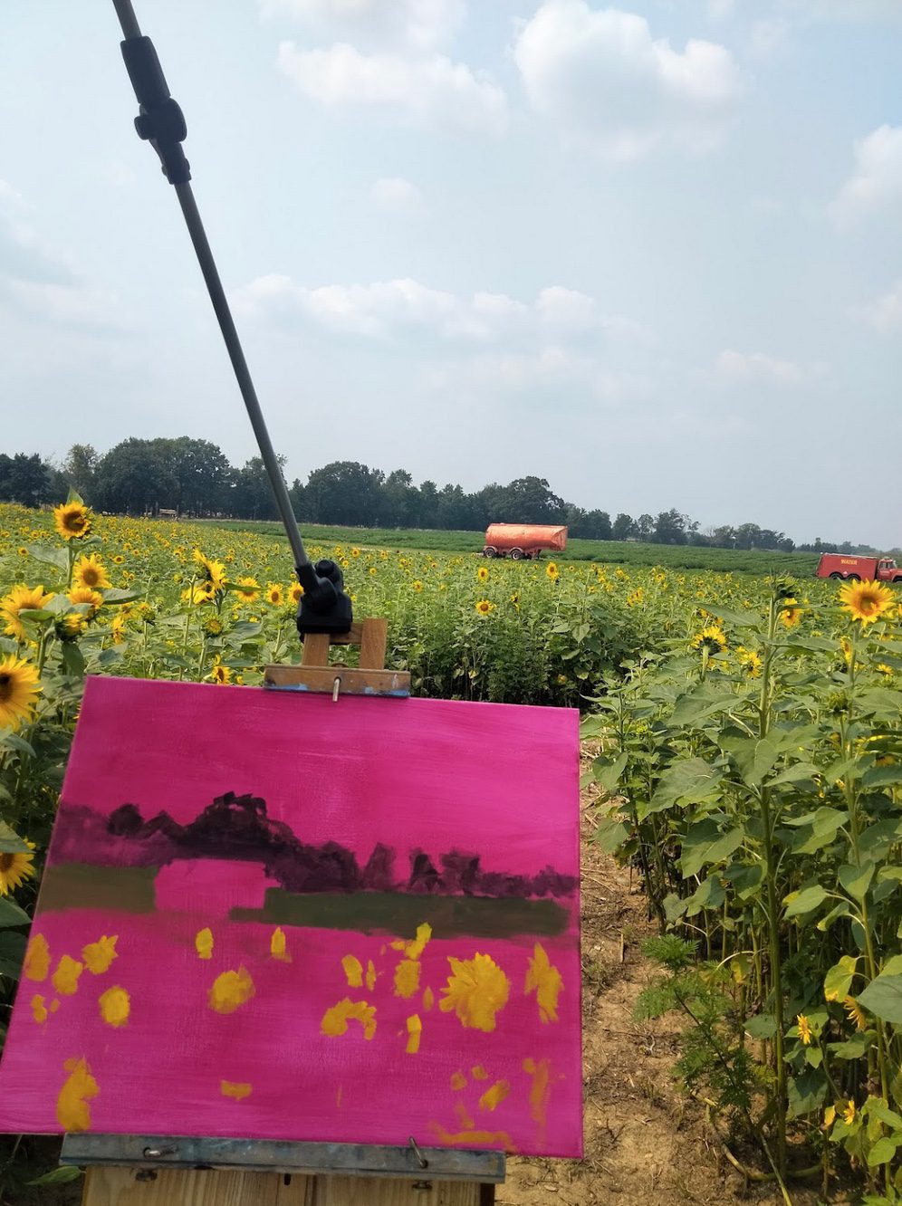 I first came upon this sunflower field almost ten years ago on a bike ride along Mason rd in Fowlerville. It was a surreal and almost spiritual experience seeing this giant sunflower field in bloom along a narrow country road while getting buzzed by local drivers. The contrast of beauty and ugliness struck me hard at that moment and stuck in my mind whenever I drove by that area.