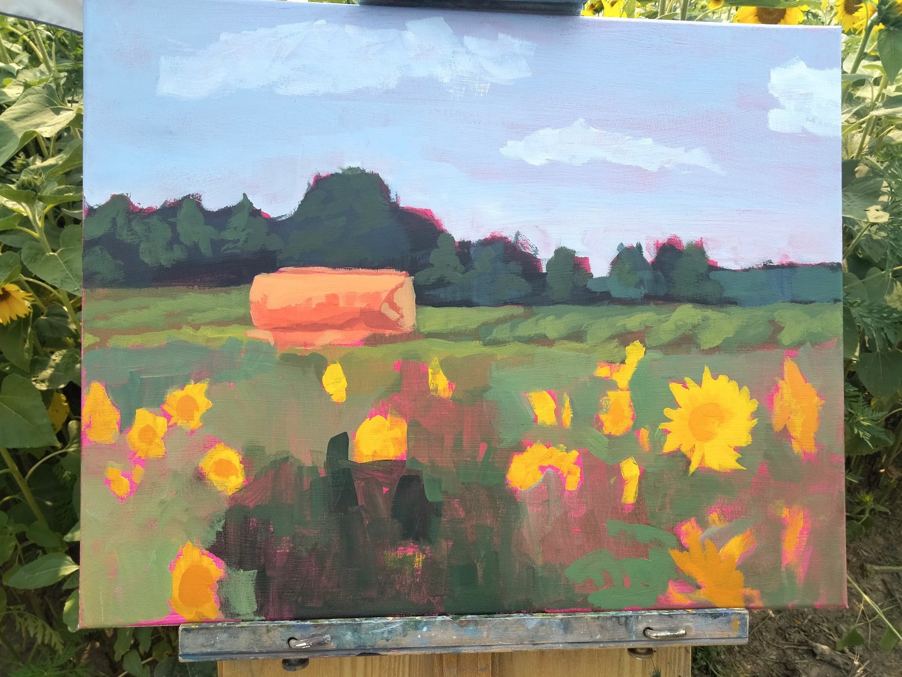 I painted this one up in about three hours on a steamy August day with wildfire smoke haze in the sky. I focused on the foreground in this one, trying to lead your eye around the canvas. I don’t feel the need to talk about what inspired me, it seems pretty evident that it was the giant field of gorgeous yellow flowers.